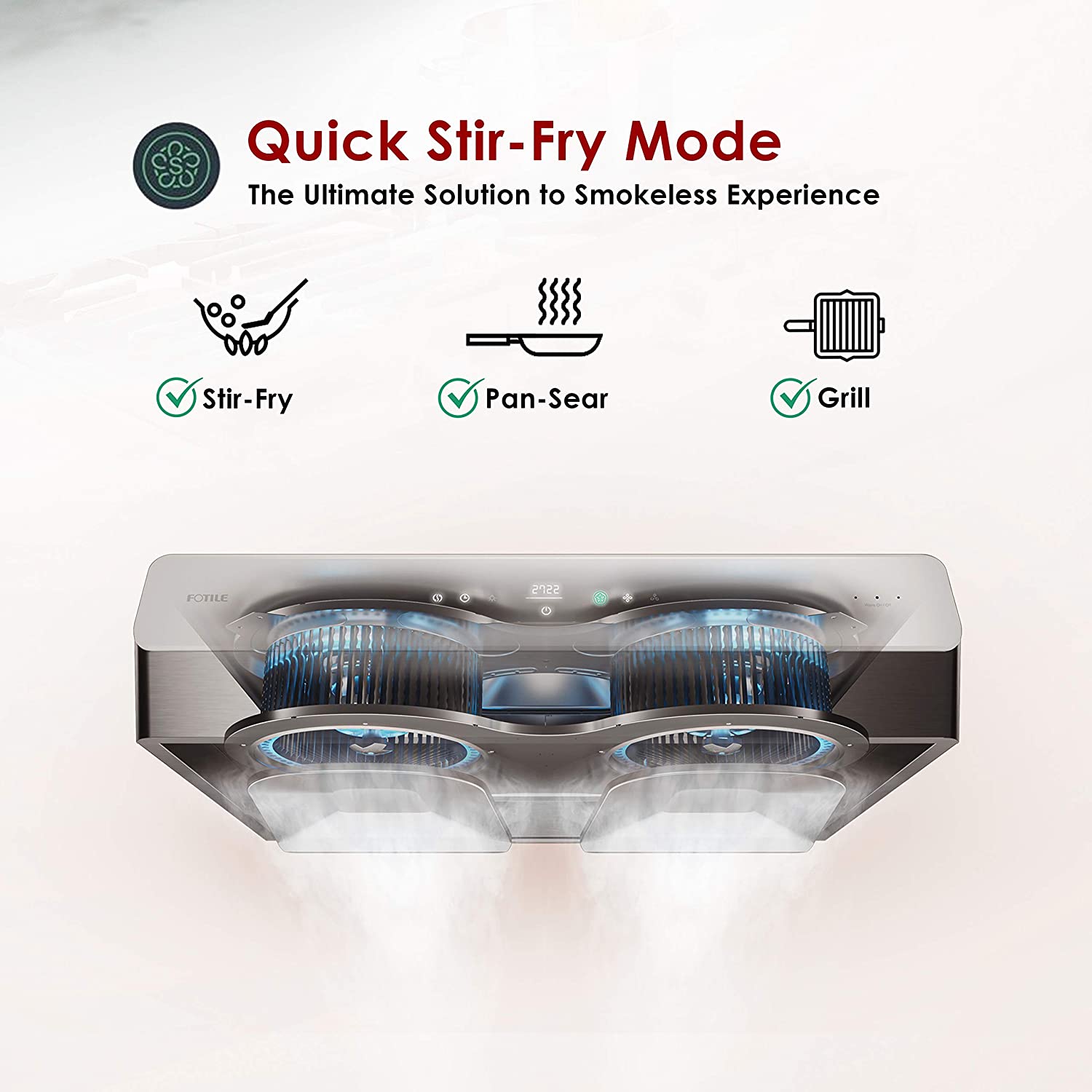FOTILE's Pixie Air™ UQG3002 is a new entry into the Under Cabinet Range Hood category for FOTILE. This sleek, ultra-slim line range hood not only blends seamlessly into your kitchen due to its low profile, but its performance is more powerful than other range hoods that are twice its size thanks to its WhisPower Motor and Captur-Sheild technologies. The Pixie Air™ removes Smoke, Steam, and Grease effortlessly with very little background noise. The stainless steel tempered glass design is modern, but yet classic, and will match your other appliances in your kitchen. The Pixie Air™ Series, incorporates technologies that not only make it efficient for new Local CFM zoning laws, but also keeps your family safe at night with its Air Management Control System that monitors the air for harmful gases or noxious fumes. If it detects any, it will automatically turn on the fan and vent it out of the house. The Pixie Air™ is a perfect balance of Design, Safety, Performance, and Convenience.