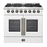 FORNO Galiano 36" 5.36 cu. ft. French Door Dual Fuel Range with 6 Sealed Burners in White with Antique Brass Accents, FFSGS6356-36WHT