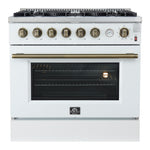 FORNO Marco 36" 5.36 cu.ft. Gas Range with 6 Burners and Temperature Gauge in White with Antique Brass Accents, FFSGS6277-36WHT