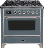 ILVE Majestic II 36" Dual Fuel Natural Gas Range in Blue Grey with Chrome Trim, UM09FDNS3BGC
