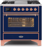 ILVE Majestic II 36" Dual Fuel Natural Gas Range in Blue with Copper Trim, UM09FDNS3MBP