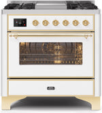 ILVE Majestic II 36" Dual Fuel Propane Gas Range in White with Brass Trim, UM09FDNS3WHGLP