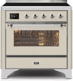 ILVE Majestic II 36" Induction Range with Element Stove and Electric Oven in Antique White with Chrome Trim, UMI09NS3AWC