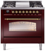 ILVE Nostalgie II 36" Dual Fuel Natural Gas Range in Burgundy with Brass Trim, UP36FNMPBUG