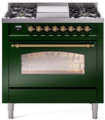ILVE Nostalgie II 36" Dual Fuel Natural Gas Range in Emerald Green with Brass Trim, UP36FNMPEGG