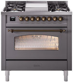 ILVE Nostalgie II 36" Dual Fuel Propane Gas Range in Matte Graphite with Bronze Trim, UP36FNMPMGBLP