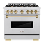 ZLINE Autograph 36" 5.2 cu. ft. Classic Gas Range with 6 Burner Cooktop and Convection Gas Oven in Satin Stainless Steel and Champagne Bronze Accents, CGRSZ-36-CB