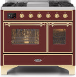 ILVE Majestic II 40" Dual Fuel Natural Gas Range in Burgundy with Brass Trim, UMD10FDNS3BUG