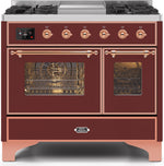 ILVE Majestic II 40" Dual Fuel Natural Gas Range in Burgundy with Copper Trim, UMD10FDNS3BUP