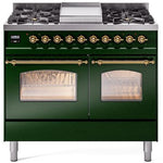ILVE Nostalgie II 40" Dual Fuel Natural Gas Range in Emerald Green with Brass Trim, UPD40FNMPEGG