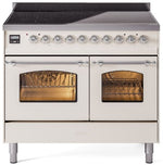 ILVE Nostalgie II 40" Induction Range with Element Stove and Electric Oven in Antique White with Chrome Trim, UPDI406NMPAWC