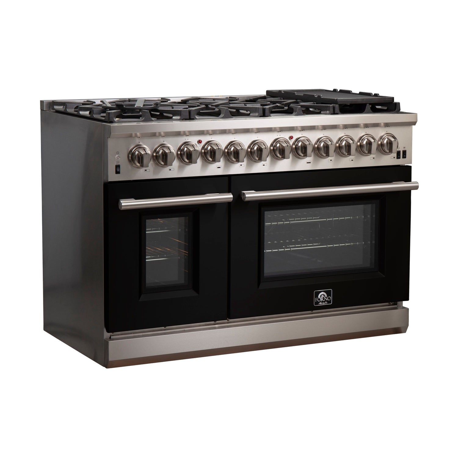 FORNO Capriasca 48" 6.58 cu. ft. Dual Fuel Range with 8 Italian Burners in Black, FFSGS6187-48BLK