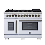 FORNO Capriasca 48" 6.58 cu. ft. Dual Fuel Range with 8 Brass Burners, Air Fryer Kit, Rotisserie Kit, Wok Support & Griddle in White with Antique Brass Accents, FFSGS6387-48WHT