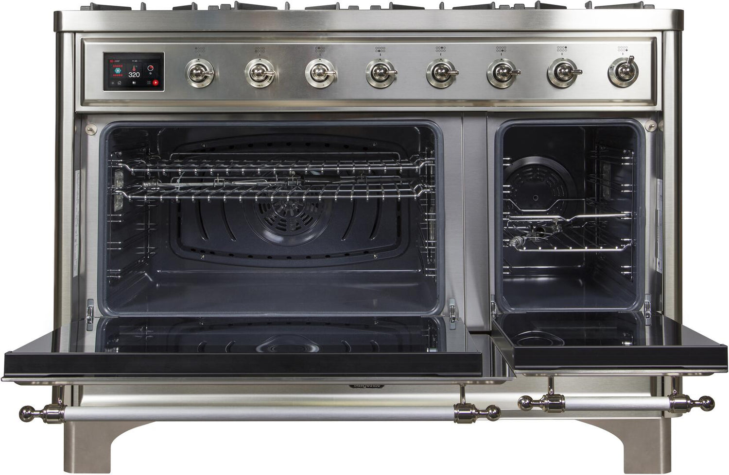 ILVE Majestic II 48" Dual Fuel Natural Gas Range in Stainless Steel with Chrome Trim, UM12FDNS3SSC