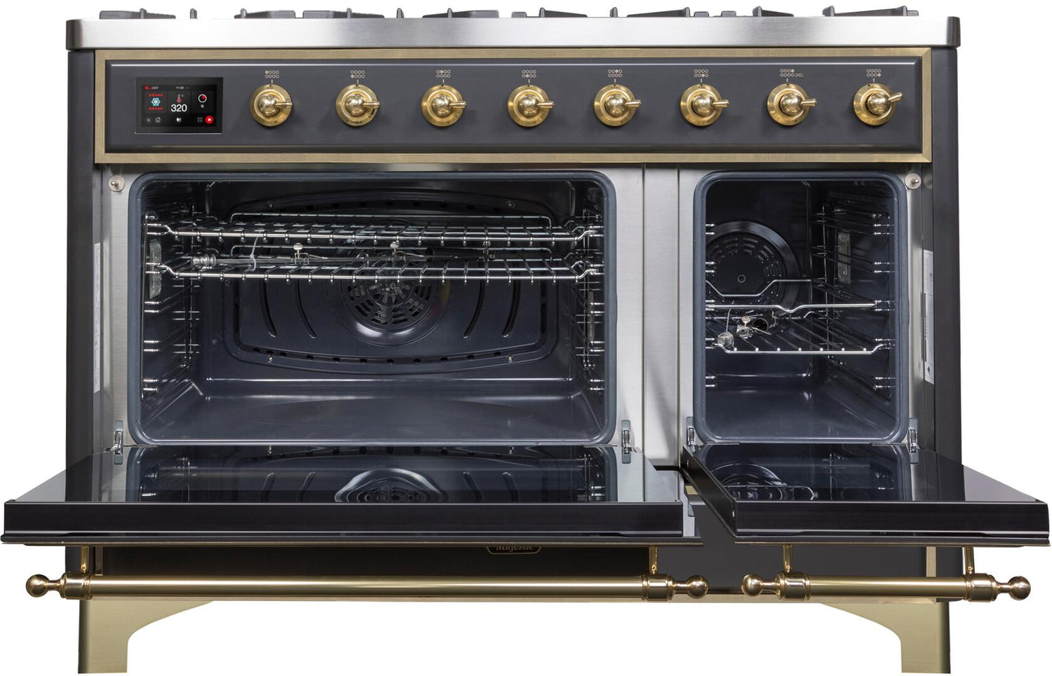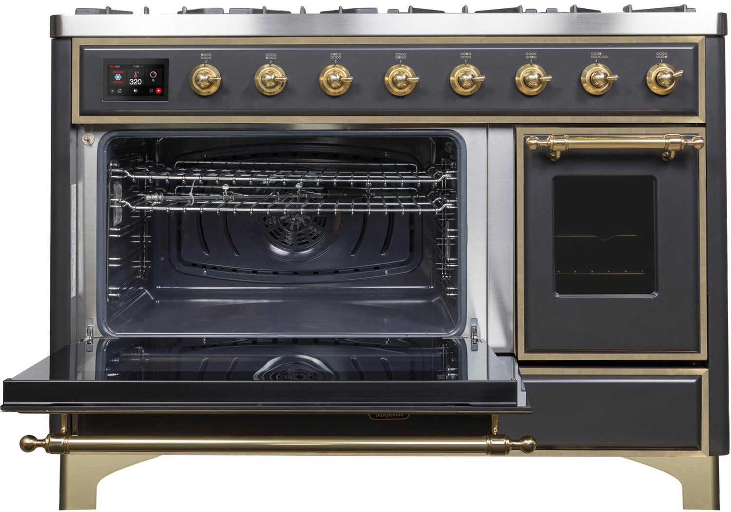 ILVE Majestic II 48" Dual Fuel Propane Gas Range in Matte Graphite with Brass Trim, UM12FDNS3MGGLP