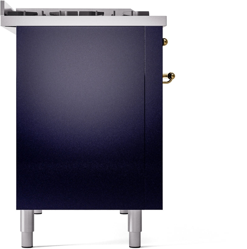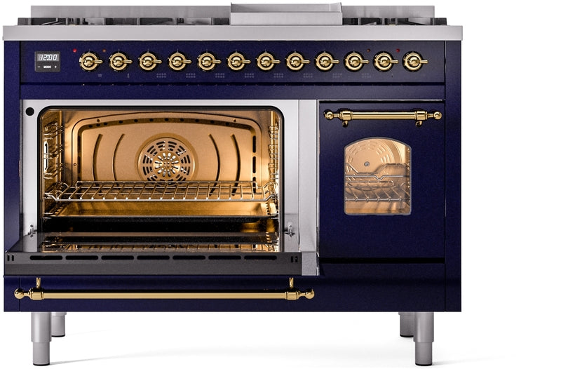 ILVE Nostalgie II 48" Dual Fuel Natural Gas Range in Blue with Brass Trim, UP48FNMPMBG