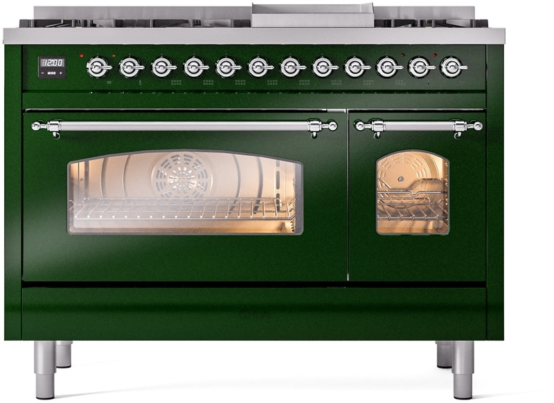 ILVE Nostalgie II 48" Dual Fuel Natural Gas Range in Emerald Green with Chrome Trim, UP48FNMPEGC