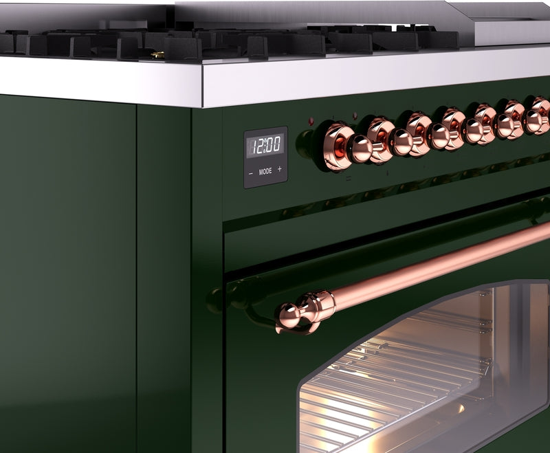 ILVE Nostalgie II 48" Dual Fuel Natural Gas Range in Emerald Green with Copper Trim, UP48FNMPEGP