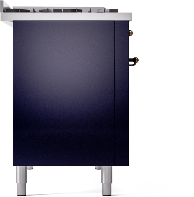 ILVE Nostalgie II 48" Dual Fuel Propane Gas Range in Blue with Bronze Trim, UP48FNMPMBBLP
