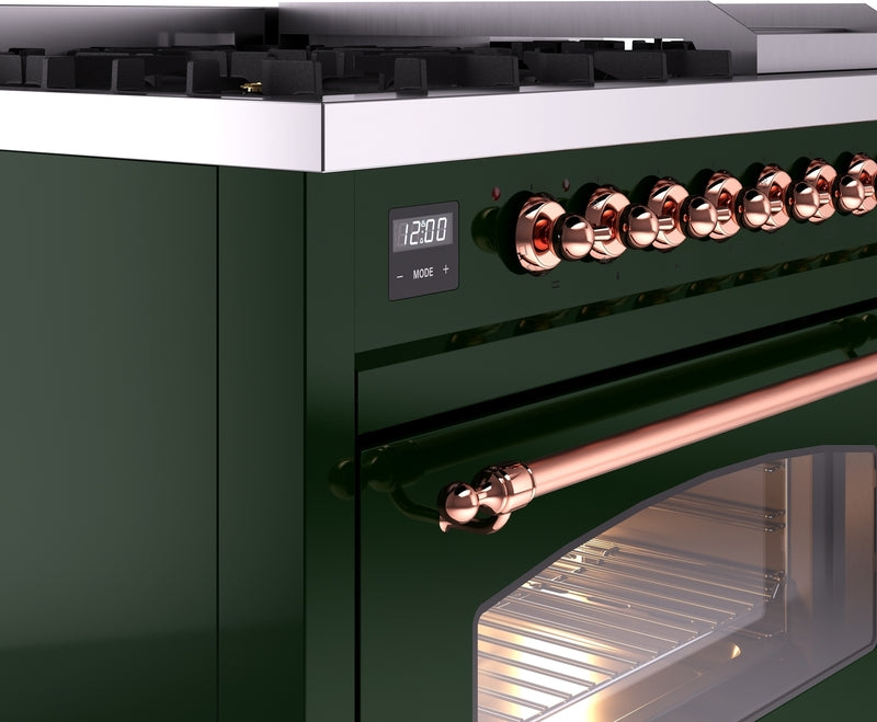 ILVE Nostalgie II 48" Dual Fuel Propane Gas Range in Emerald Green with Copper Trim, UP48FNMPEGPLP