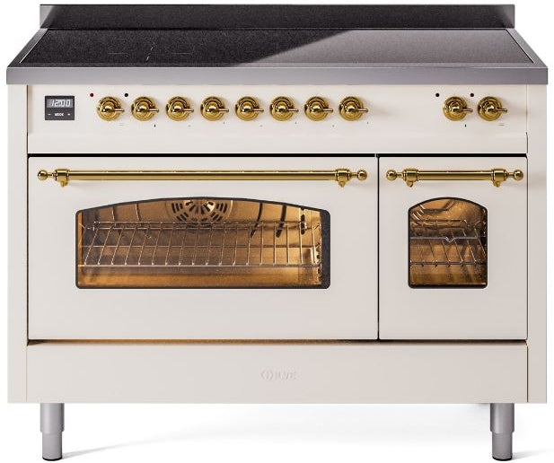 ILVE Nostalgie II 48" Induction Range with Element Stove and Electric Oven in Antique White with Brass Trim, UPI486NMPAWG
