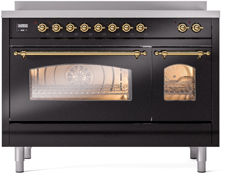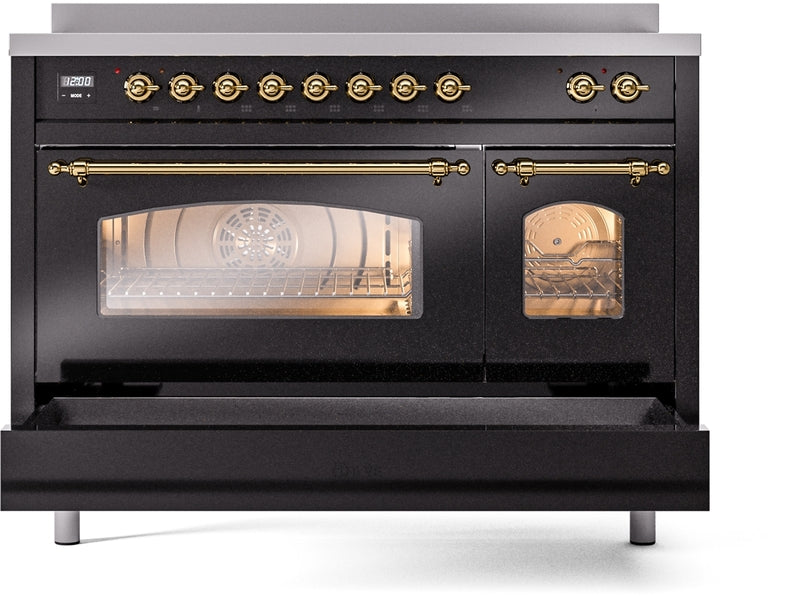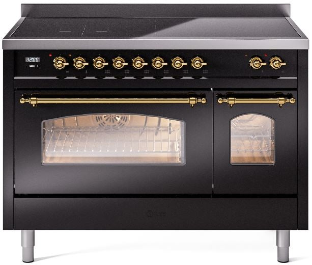 ILVE Nostalgie II 48" Induction Range with Element Stove and Electric Oven in Black with Brass Trim, UPI486NMPBKG