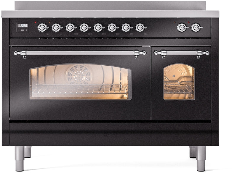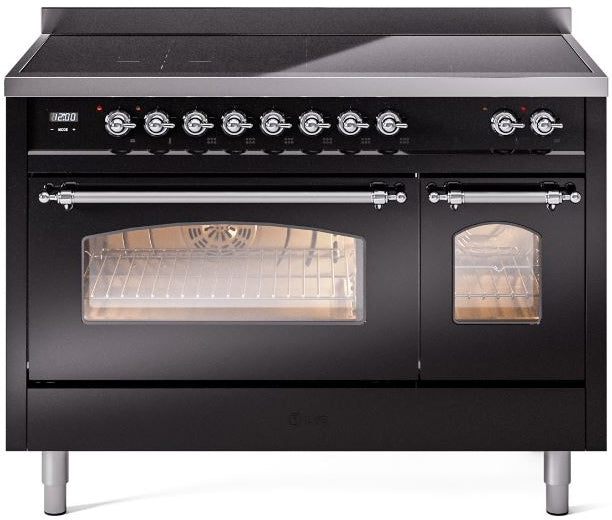 ILVE Nostalgie II 48" Induction Range with Element Stove and Electric Oven in Black with Chrome Trim, UPI486NMPBKC