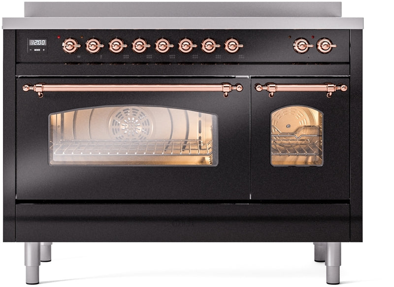 ILVE Nostalgie II 48" Induction Range with Element Stove and Electric Oven in Black with Copper Trim, UPI486NMPBKP