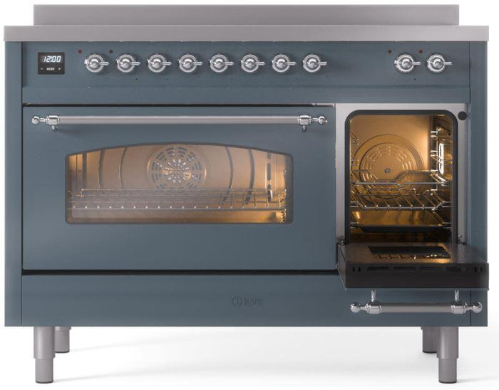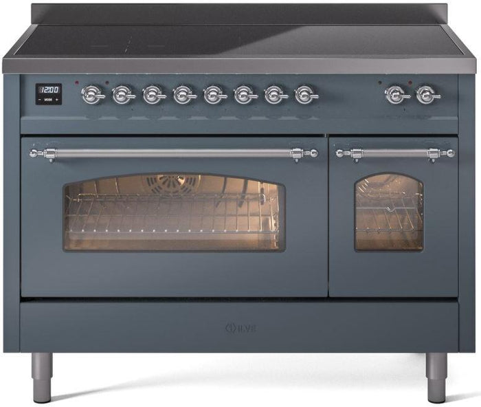 ILVE Nostalgie II 48" Induction Range with Element Stove and Electric Oven in Blue Grey with Chrome Trim, UPI486NMPBGC