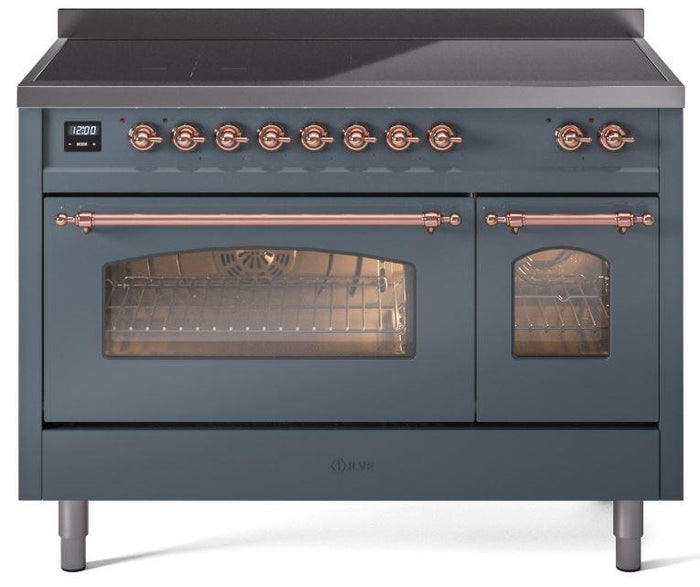 ILVE Nostalgie II 48" Induction Range with Element Stove and Electric Oven in Blue Grey with Copper Trim, UPI486NMPBGP