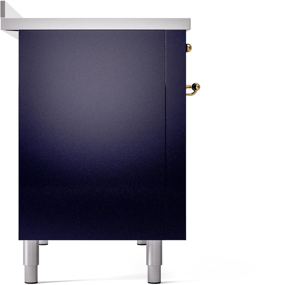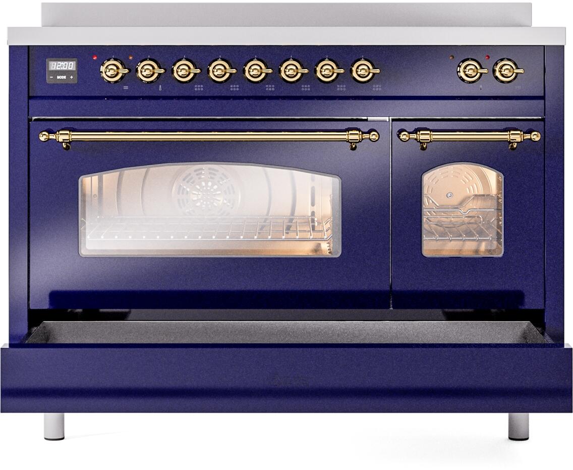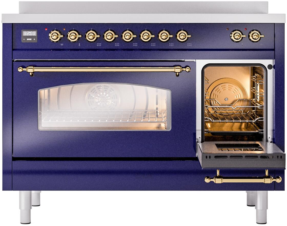 ILVE Nostalgie II 48" Induction Range with Element Stove and Electric Oven in Blue with Brass Trim, UPI486NMPMBG