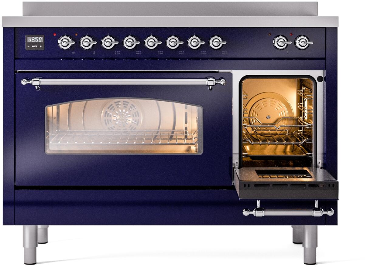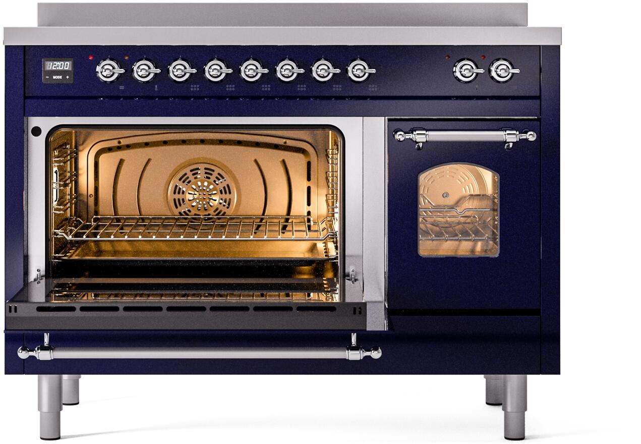 ILVE Nostalgie II 48" Induction Range with Element Stove and Electric Oven in Blue with Chrome Trim, UPI486NMPMBC