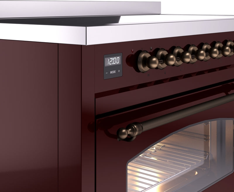 ILVE Nostalgie II 48" Induction Range with Element Stove and Electric Oven in Burgundy with Bronze Trim, UPI486NMPBUB