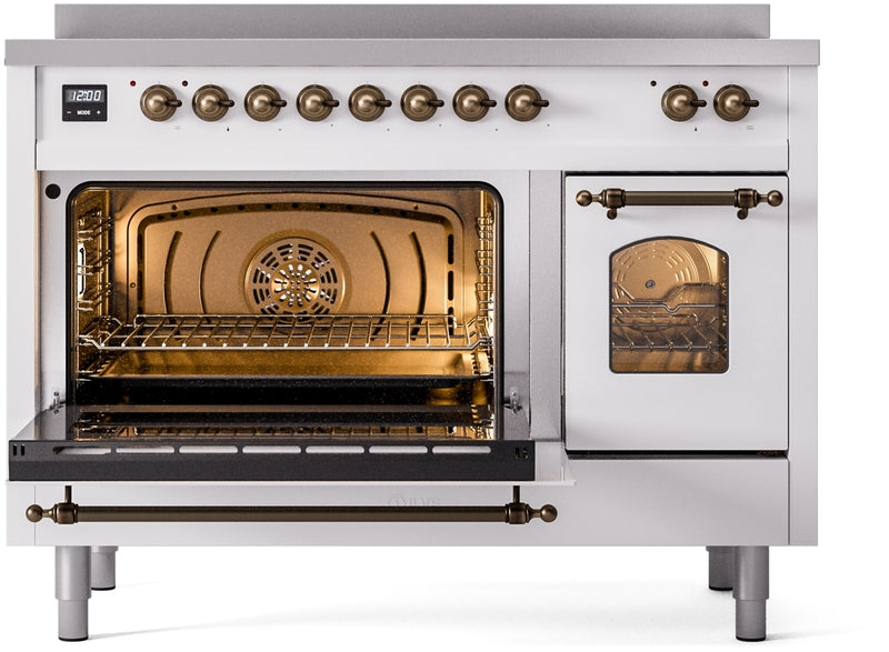 ILVE Nostalgie II 48" Induction Range with Element Stove and Electric Oven in White with Bronze Trim, UPI486NMPWHB