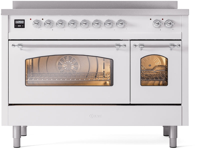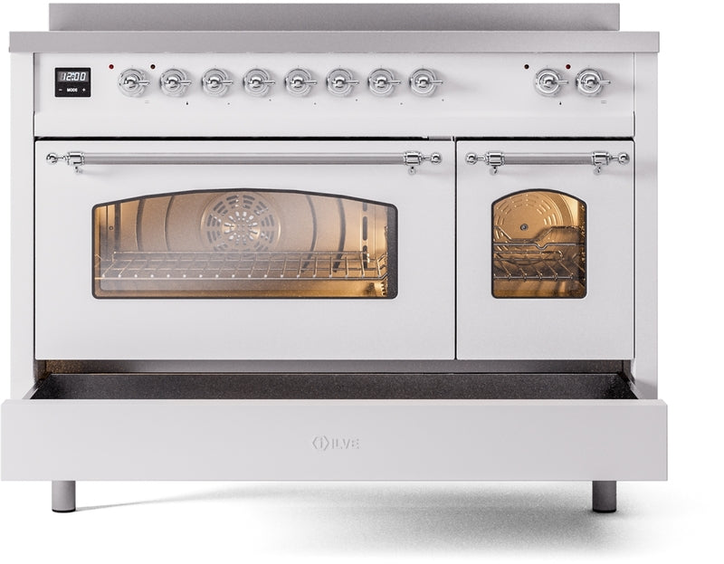 ILVE Nostalgie II 48" Induction Range with Element Stove and Electric Oven in White with Chrome Trim, UPI486NMPWHC
