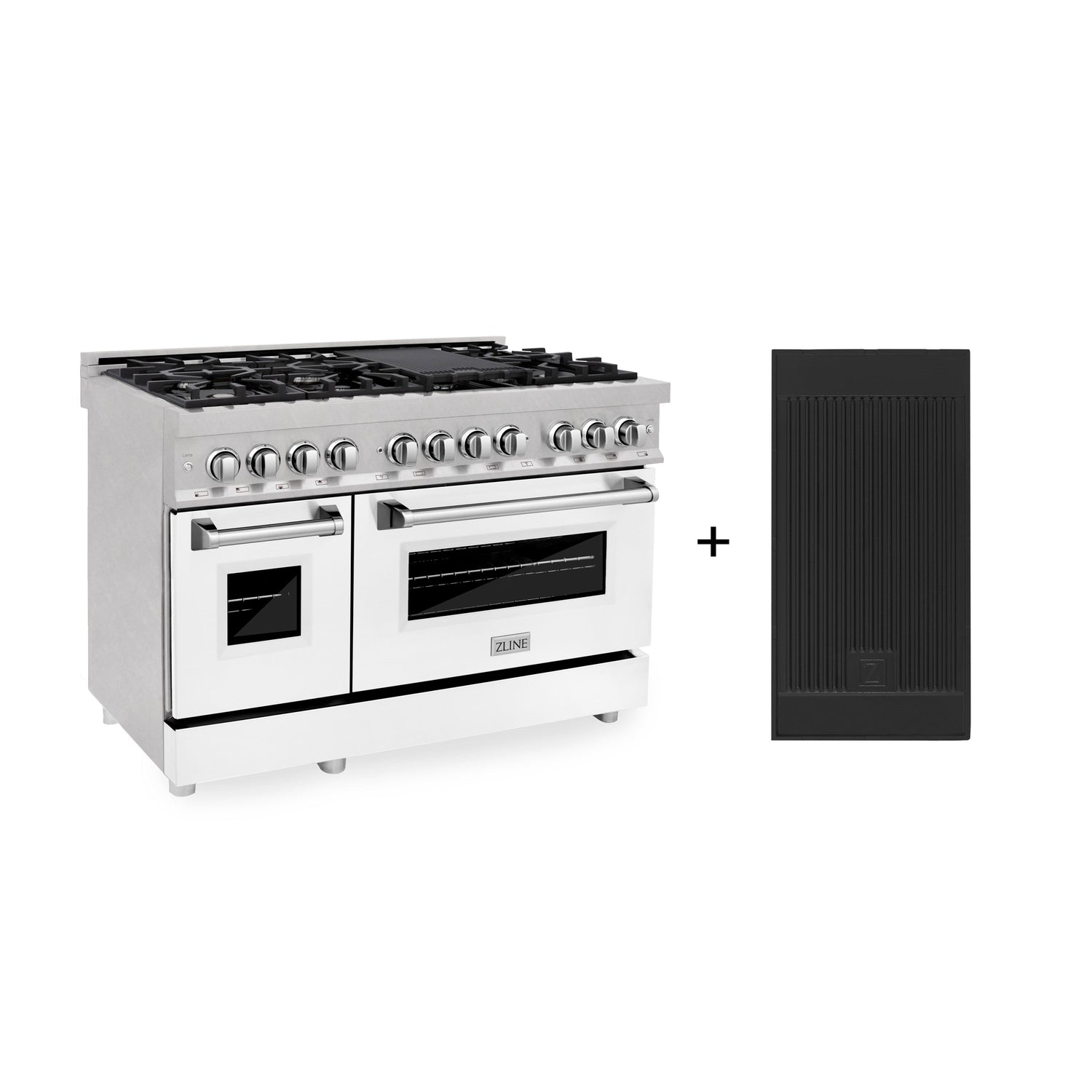 ZLINE 48" 6.0 cu. ft. Legacy Dual Fuel Range with 7 Burner Gas Cooktop and 2 Electric Ovens in Satin Stainless Steel with White Matte Doors and Griddle, RAS-WM-GR-48