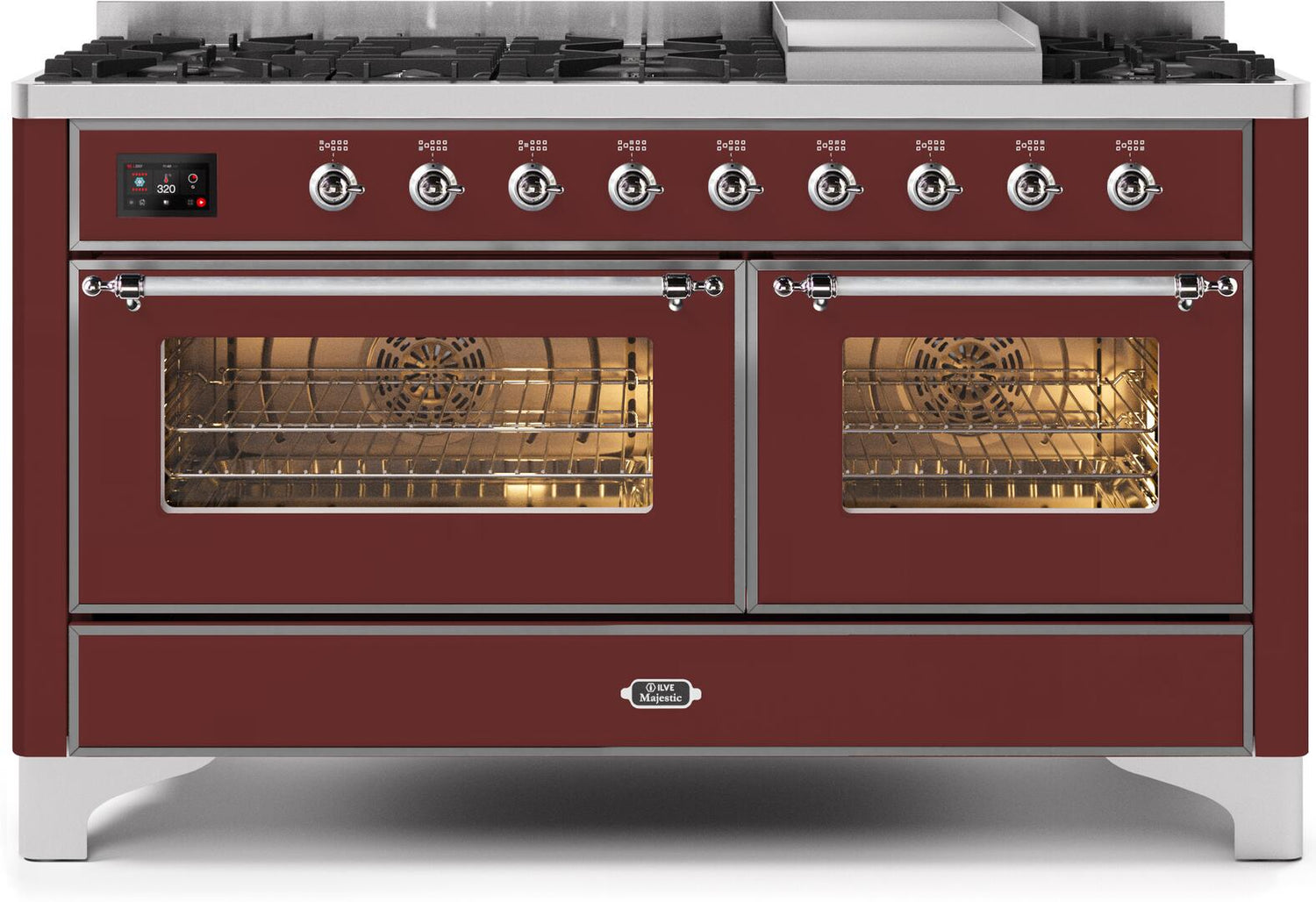 ILVE Majestic II 60" Dual Fuel Propane Gas Range in Burgundy with Chrome Trim, UM15FDNS3BUCLP