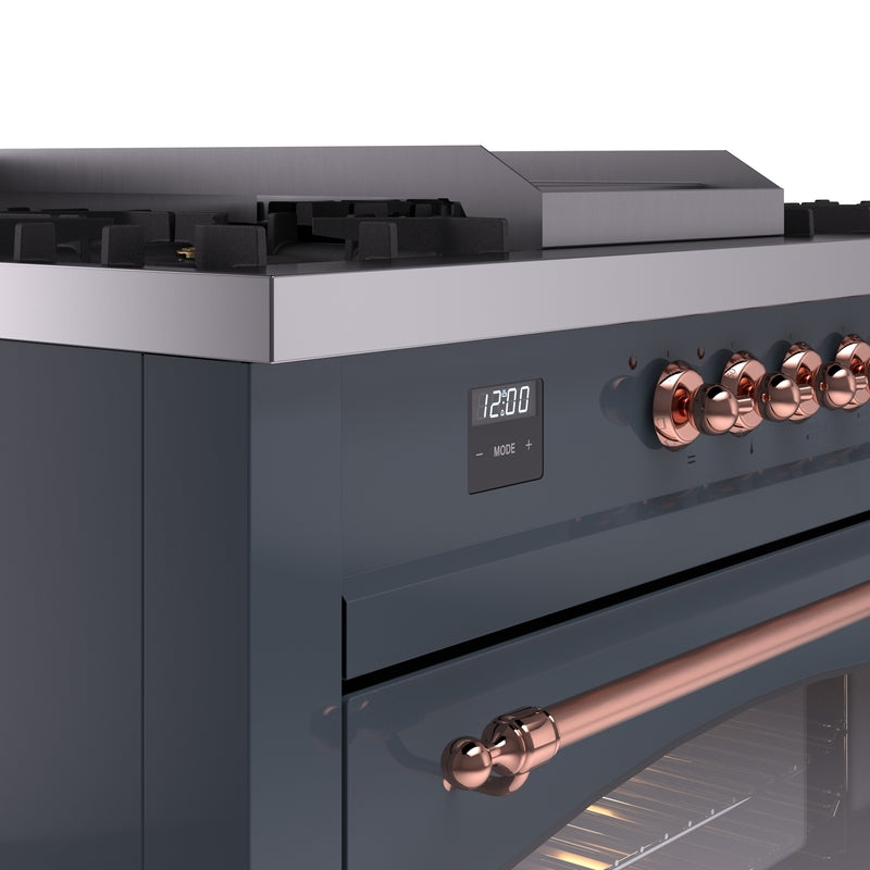 ILVE Nostalgie II 60" Dual Fuel Natural Gas Range in Blue Grey with Copper Trim, UP60FSNMPBGP