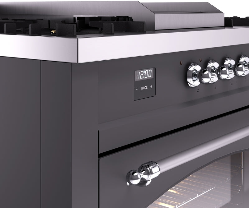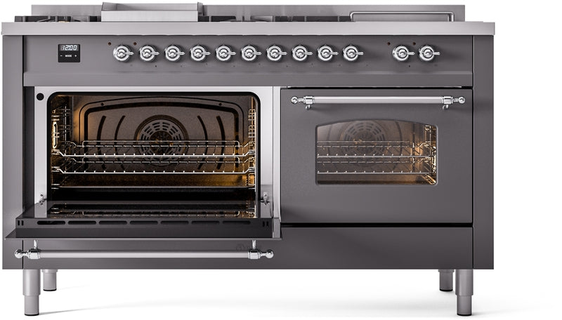 ILVE Nostalgie II 60" Dual Fuel Natural Gas Range in Matte Graphite with Chrome Trim, UP60FSNMPMGC