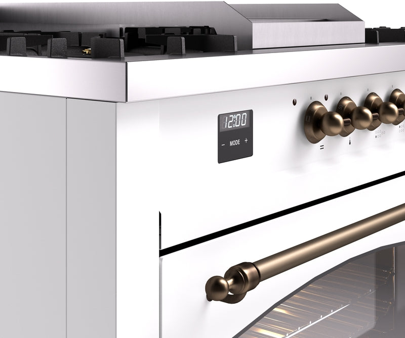 ILVE Nostalgie II 60" Dual Fuel Natural Gas Range in White with Bronze Trim, UP60FSNMPWHB