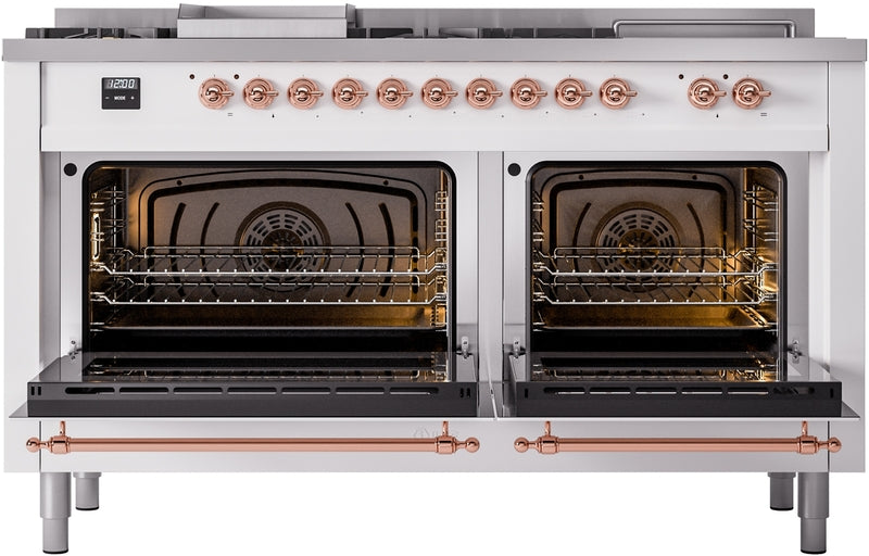 ILVE Nostalgie II 60" Dual Fuel Natural Gas Range in White with Copper Trim, UP60FSNMPWHP