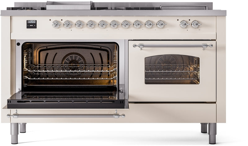 ILVE Nostalgie II 60" Dual Fuel Propane Gas Range in Antique White with Chrome Trim, UP60FSNMPAWCLP