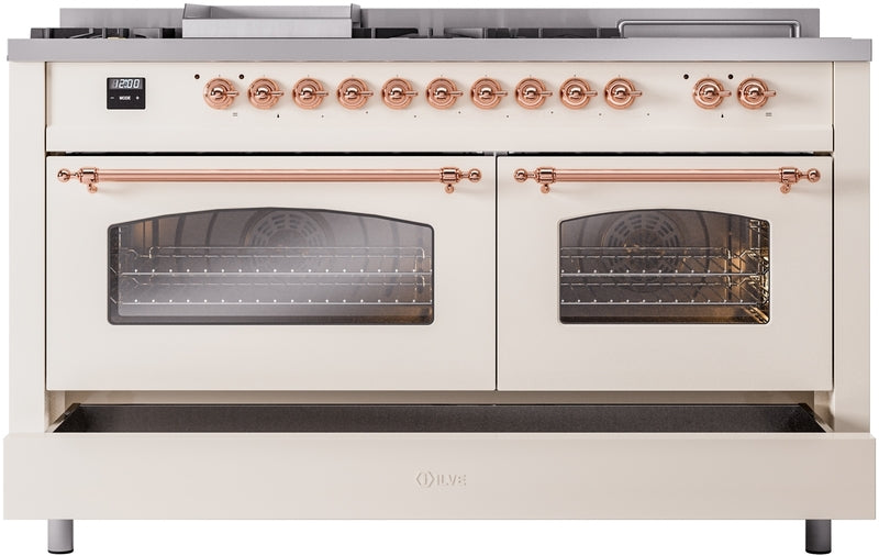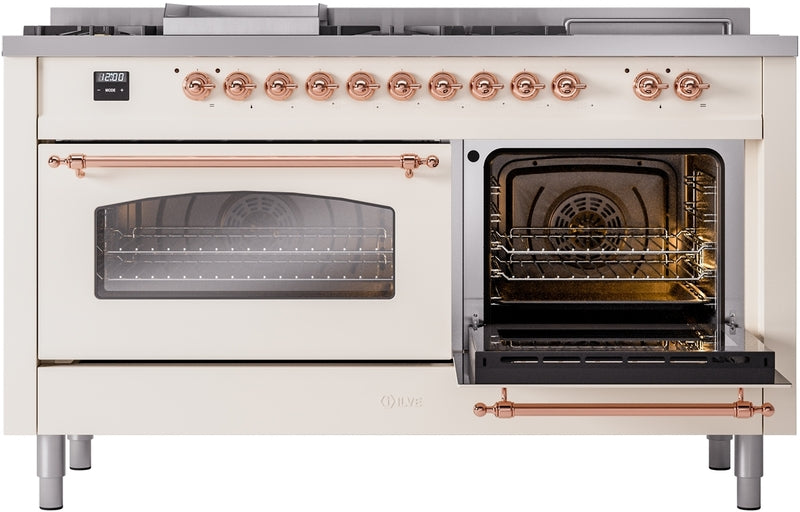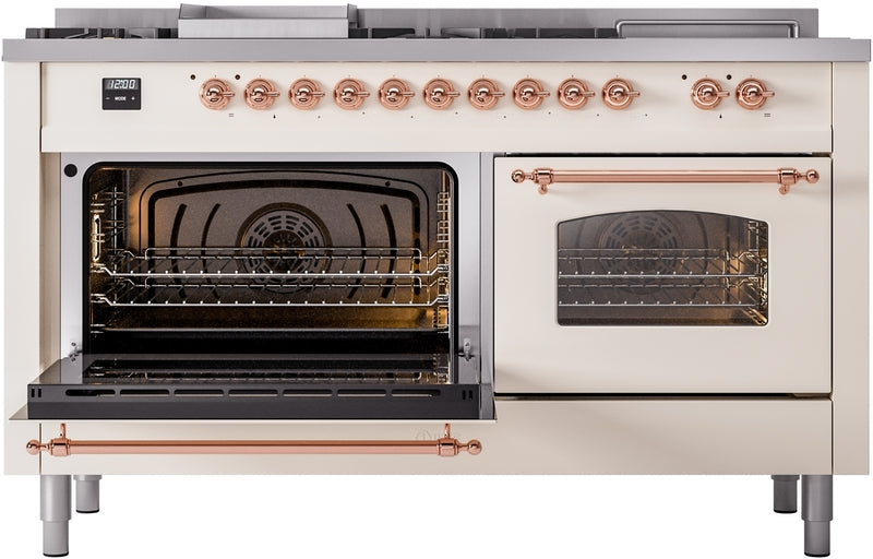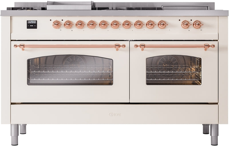 ILVE Nostalgie II 60" Dual Fuel Propane Gas Range in Antique White with Copper Trim, UP60FSNMPAWPLP