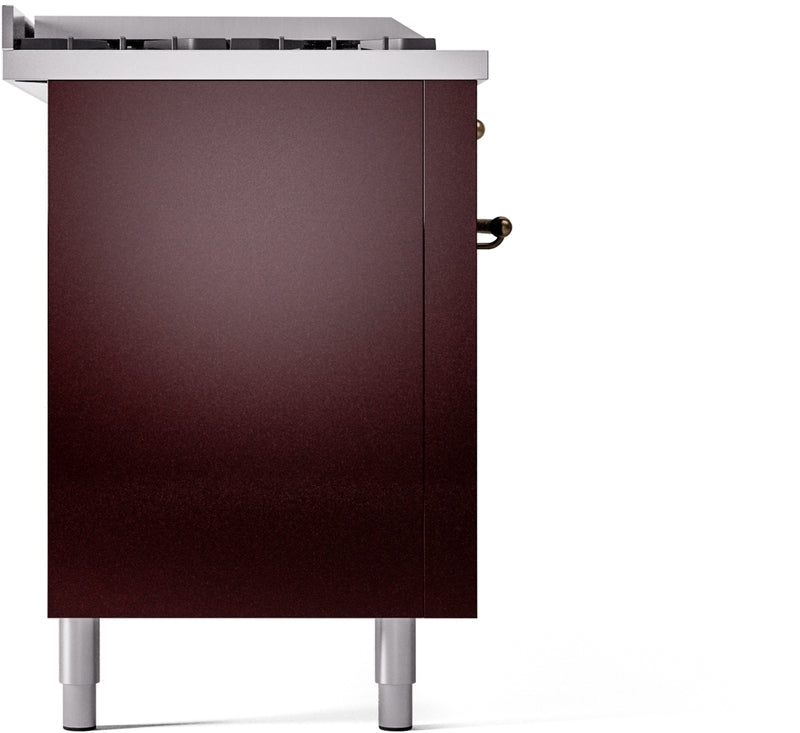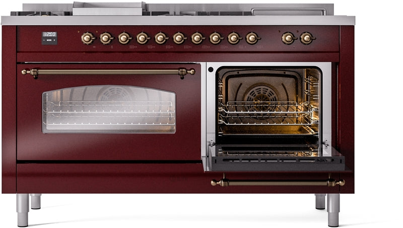 ILVE Nostalgie II 60" Dual Fuel Propane Gas Range in Burgundy with Bronze Trim, UP60FSNMPBUBLP