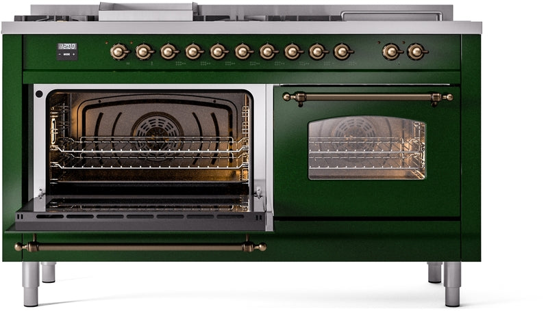 ILVE Nostalgie II 60" Dual Fuel Propane Gas Range in Emerald Green with Bronze Trim, UP60FSNMPEGBLP
