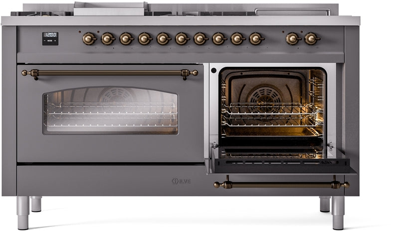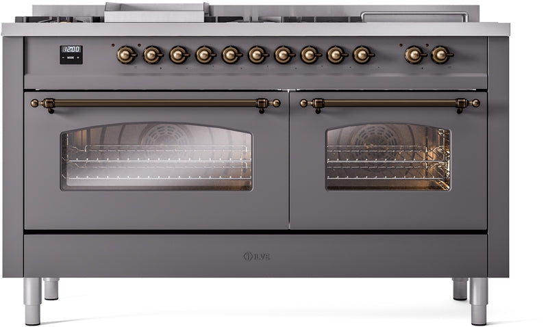 ILVE Nostalgie II 60" Dual Fuel Propane Gas Range in Matte Graphite with Bronze Trim, UP60FSNMPMGBLP