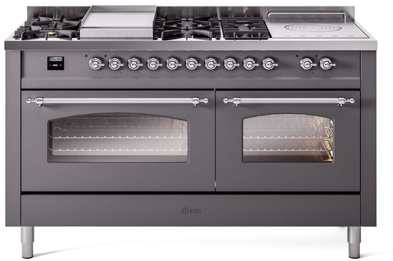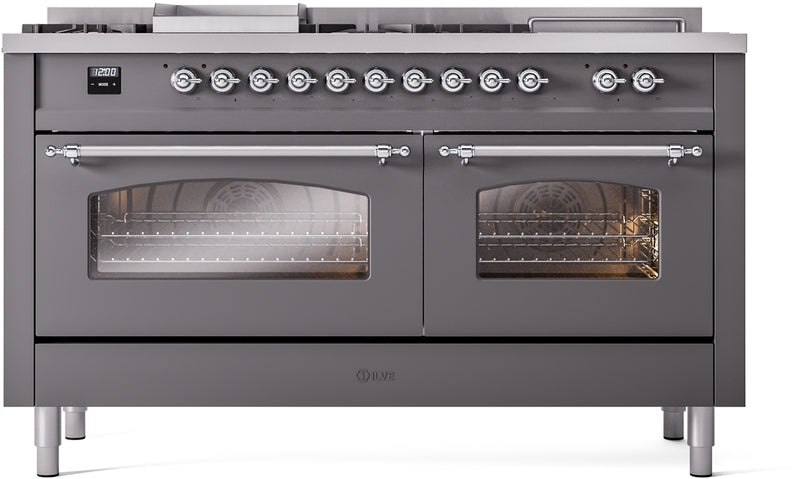 ILVE Nostalgie II 60" Dual Fuel Propane Gas Range in Matte Graphite with Chrome Trim, UP60FSNMPMGCLP