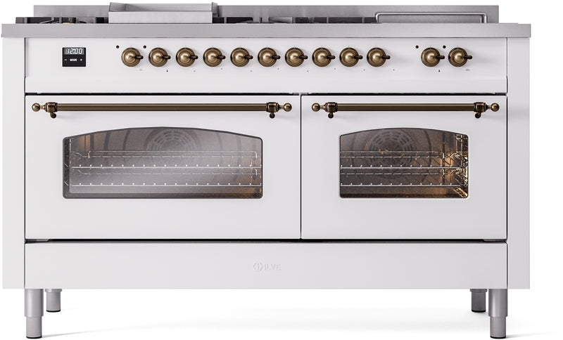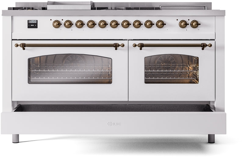 ILVE Nostalgie II 60" Dual Fuel Propane Gas Range in White with Bronze Trim, UP60FSNMPWHBLP
