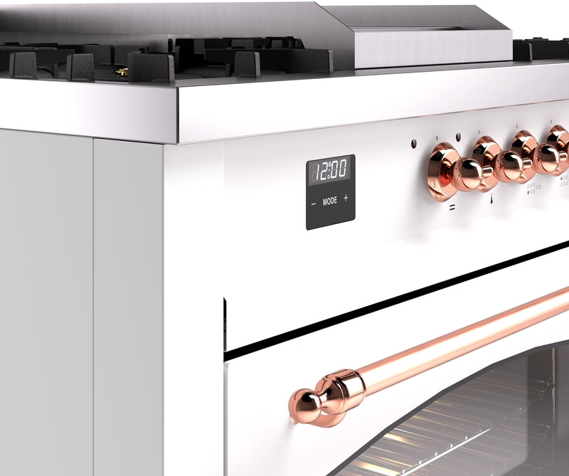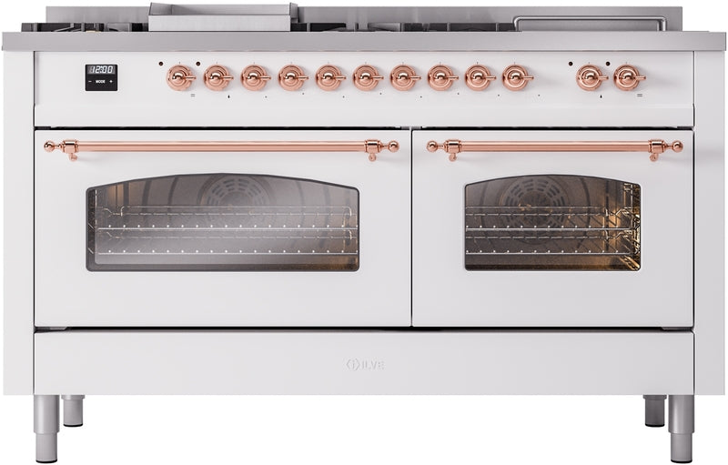 ILVE Nostalgie II 60" Dual Fuel Propane Gas Range in White with Copper Trim, UP60FSNMPWHPLP
