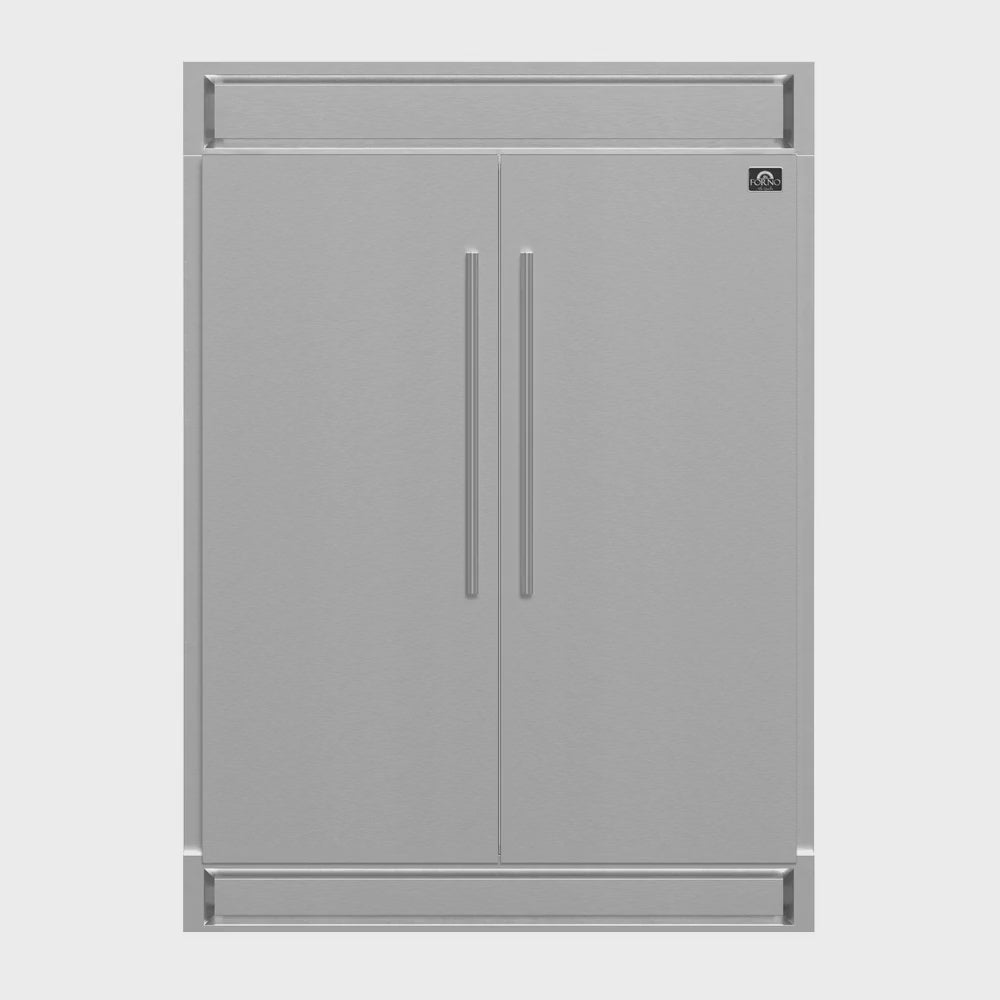 The FORNO Maderno Refrigerator and Freezer Combo brings together two 28-inch convertible units, seamlessly connected by a decorative trim kit to form a stunning 60-inch built-in design. With a total capacity of 27.2 cu.ft., this unit offers exceptional versatility and spacious storage. Each side features independent temperature zones that can switch between refrigerator and freezer modes, giving you full control to suit your needs. Engineered with Total No Frost technology, the Maderno eliminates manual defrosting while maintaining ideal temperatures with dual inverter compressors. Interior LED lighting, sleek glass shelves with silver trim, and convenient plastic drawers enhance both function and style. With features like Super Cool and Super Freeze, quick temperature recovery is effortless- perfect for preserving freshness. All housed in a durable, fingerprint-resistant stainless-steel VCM panel, the Maderno is as efficient as it is elegant, complete with an E-Star energy rating and T Climate Class certification.